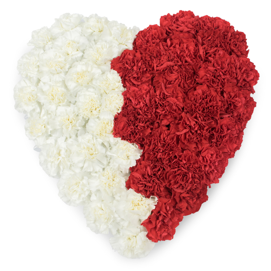 Celebrate love and sympathy with our stunning heart-shaped carnation bouquet, crafted by Handy Flowers. This elegant arrangement features a beautiful blend of red and white carnations, symbolizing passion and purity.